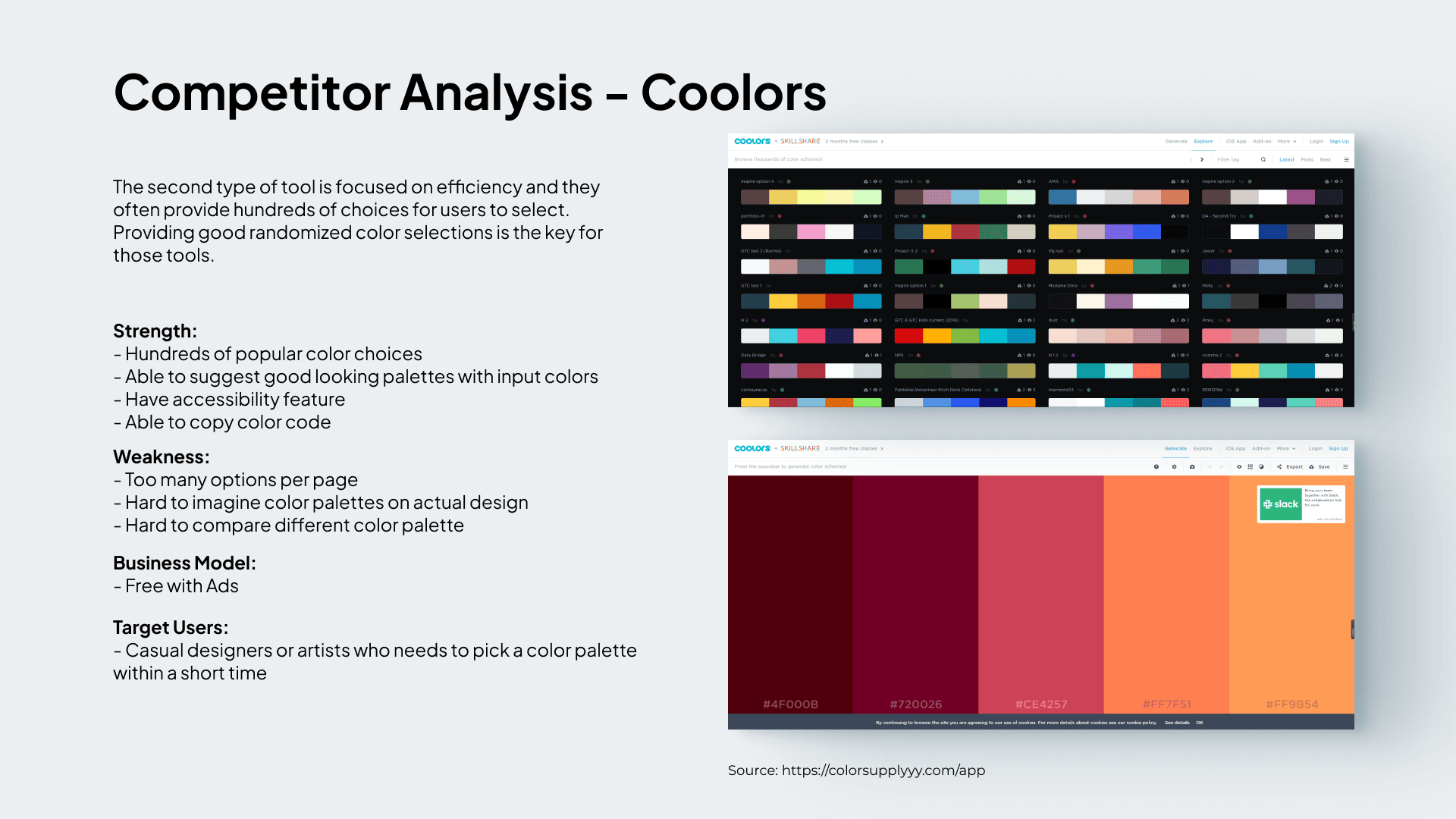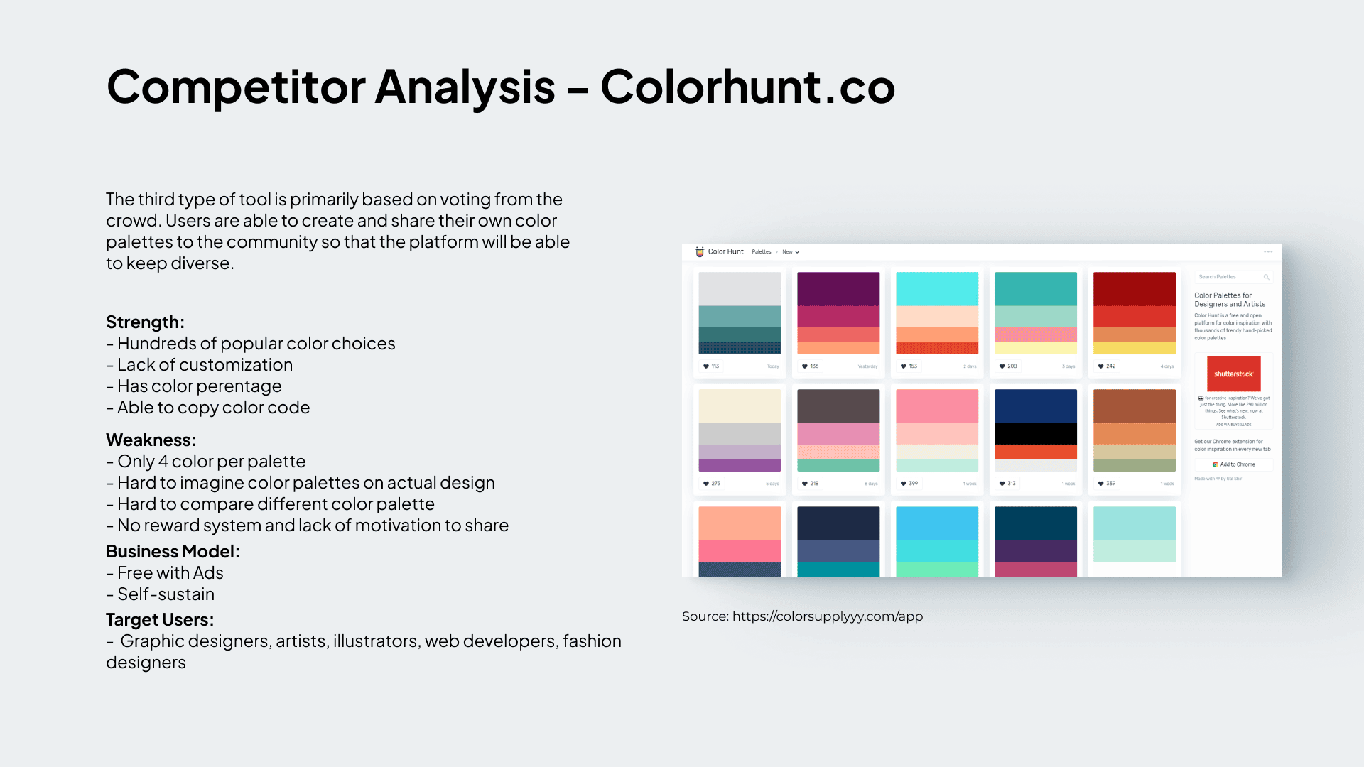 Through interviews and journey mapping, I found that designers spend on average 15–20 minutes just to see whether a palette actually works on their designs.