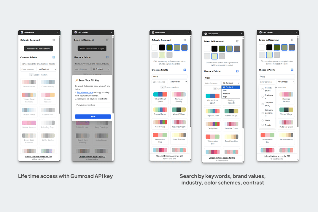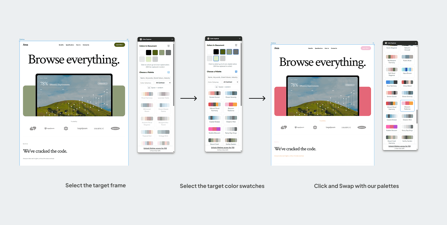 The plugin always reflects what’s selected. No selection → Extract palette → Replace. The user is never "lost" in deep menus.